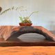 天然风化料件取材,保留自然造型制成台面、摆件;