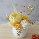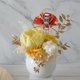 圆圆满满喜气洋洋的永生桌花,特选圆润的纯白容器,搭配红黄金色系的永生花,不只适合新年在家中摆一盆带来喜气,当作开幕的贺礼也很适合。永生花不需浇水,保持干燥可长时间保存,送礼或自用都很适合喔。