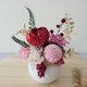 -使用各种永生花与干燥花制作,包含象征富贵圆满的牡丹与步步高升的百日草/乒乓菊。