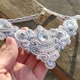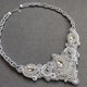 - Beautiful wedding necklace, made with soutache embroidery technique. Materials: beads, rhinestone crystals, seed beads, soutache cord. The back side is covered with leather. Light weight. Adjustable length.