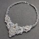 Beautiful wedding necklace, made with soutache embroidery technique. Materials: beads, rhinestone crystals, seed beads, soutache cord. The back side is covered with leather. Light weight. Adjustable length.