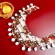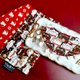 **〈主子卖萌-萌宠招财系列-双面领巾(猫抓老鼠)〉**选用__衬金可爱招财猫图腾__搭配__红底黄金鼠薄棉布__,缀以米白毛球垂坠装饰,一面猫咪、一面老鼠的趣味搭配,创意呈现鼠年新春意象。