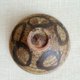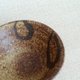 这件作品是用粗糙的信乐粘土在陶轮上制成的,并用铁釉在上面绘制了俏皮的图案。