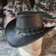 这款醒目的牛仔帽采用顶级黑纹皮革精心制作,以其耐用性和粗犷魅力而闻名。