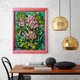 Painting with bright, positive abstract peony with an unusual texture.