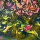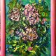 Wrote intuitive way of painting, first with acrylic underpainting, which saw the flowers, then using texture paste created of embossed flowers and leaves. In the third stage I finished painting with oil.