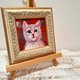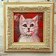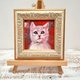 一幅可爱的小画,画中有一只可爱的白色小猫,呈现粉红色。 纸板上的压克力。 这幅画以白色为边框,配上金色装饰,是送给爱人的精美礼物。 绘画尺寸:10x10 厘米 / 3,93x3,93 英寸 裱框画尺寸:15x15 厘米 / 5,90x5,90 英寸