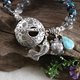 • **材料**:泰银、OT扣泰银 (32 毫米)、拉长石 (10.7-11 毫米) 、凤凰石 (8.5 毫米) 、 堇青石 (7 毫米) 、彼得石 (约 9 毫米) 、黑草莓晶 (9 毫米) 、黑发晶 (7.5-8 毫米) 、 拉利玛海纹石925纯银吊坠 (13x18 毫米) 、以及925纯银(圆珠 3.5毫米)。