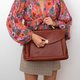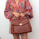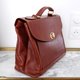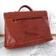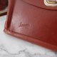 这个款式是很受女生喜爱的小公文包,微呈梯形,酒红色真皮,皮质厚实非常有质感。整体八成新,前面有一个转动的金属锁,打开会看见两个主格,主格都是由腰果花纹布料制成,可放A4文件。除了里面有一个拉链格外,前后都各有拉链格,容量非常充足。