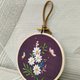 雏菊与蝶 刺绣壁饰 绣框尺寸:11×17.5cm(包含吊绳) 纯手工刺绣作品