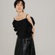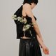 黑色花邊一字肩 花朵立体吊带小可愛 - 女装背心 - 其他人造纤维 黑色