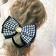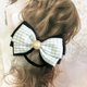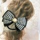 A houndstooth pattern ribbon and a glittering edging ribbon are layered to create an elegant ribbon.