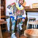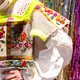 设计师善用多种物料的对比, 柔软的毛织料子, 蕾丝花布, 加上重工绣花图案, 与运动风的宽松上衣