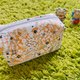 吐司方形立体造型,外出旅行的好帮手,可装随身化妆品/蓝牙耳机/配件配饰/纸钞零钱信用卡,方便拿取,内搭可爱嫩紫鸟语花卉!