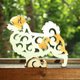Figurine Longhaired chihuahua is made of MDF (Medium Density Fiberboard, wood), with the use of laser cutting and hand-painted with acrylics using bronze metallic paints. Decorative curl at the front paws dog securely hold the statue upright.