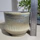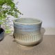 三足小花盆 用陶土手拉坏成形 高9.8(含足) /口缘内径10.8(厘米) 花盆下方刻剔的直线条 增加趣味 喷上双色的釉 互熔后产生的多变颜色和结晶 耐看又不失雅致 不会抢走植栽的光彩 却能让办公桌增添舒适气氛 #本产品以环保包装出货