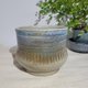 三足小花盆套 -- 陶土拉坏成形 高9.8(含足) /口缘内径10.8(厘米) 可水栽也可用做 3寸~4寸盆的盆套 双挂釉有蓝紫结晶呈现 雅致耐看不抢花草的风采 放在办公桌上或住宅角落能增添生气