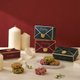 小礼盒选用尊爵蓝及高级的贵气红,以烫金设计让你的婚礼增添时尚高级感及气质~宾客收到时也会感受到新人们的用心 尤其打开始出现可爱的圆形米饼 代表圆满美好的寓意