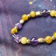 在深紫与暖黄交错的光影中,仿佛初夏将至、暮春犹存。紫水晶带来静谧与灵性,黄虎眼则如阳光般稳定坚定,结合而成的配色兼具安定与活力,犹如心境转换时的一抹柔光。
