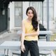 - Cropped TANK-TOP - Yellow Fabric : Linen Color : Yellow