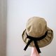 - 卡其色帆布 前短后长设计 类似编制帽的感觉但是是布料制作 帽檐有皱褶设计加上黑边蝴蝶结 戴起来非常日本少女感 大大推荐款