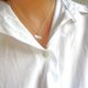吊坠表面呈现捶打纹的质感, 凹凸不平的表面将光线向四方八面反射开去,配上轻巧闪烁的十字链, 将华丽光泽伸延到极限。
