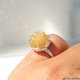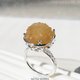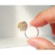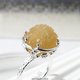 这款戒指将结晶成球状的水晶原石,镶嵌于结合唐草与缕空图案的戒台上。