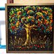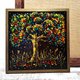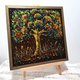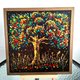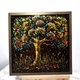 画布板上的装饰风格压克力画。 生命之树。 (带有金色点缀) 装在浅色手工制作的木制框架中,涂上古金色,作为礼物。 原画。没有印刷品。 尺寸:含框 31 x 31 厘米 / 12.20 x 12.20 英寸