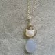 ~13/14mm 全天然无优化切面蓝玉髓, 黄铜,贝母猫 925 纯银颈链 hkd 340