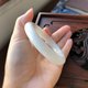 天然羊脂白玉和田玉老坑一级白,料子柔和,圈口57.6 mm, 尺寸12mm*10 mm。