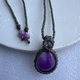 选用优雅柔和的水滴型紫水晶,搭配手工编织的灰绿色蜡线,展现出低调内敛的静谧气质。上方镶嵌一颗切面紫水晶珠,为整体设计增添层次与光感。尾端点缀双珠与铜珠细节,收尾可调节,适合不同穿搭风格。