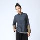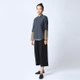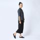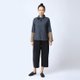 - 靛青蓝染的条纹棉麻布,经过洗水工艺, 具有非常丰富的面料表情。 会随着穿着和洗涤的时间,越来越好看。