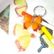 从原创手绘水彩画截取元素,手工制作的饰品。