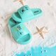 非常显白的蓝绿色拖鞋, Moomin 姆明与歌妮在鞋面上,可爱疗愈又吸睛。 EVA材质Q软有弹性,穿整天也舒适!室内室外都可穿。