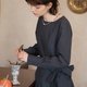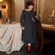 一字领的剪裁,加下半身裹裙式设计如甜点师围裙般率性自然,藏蓝色调衬托出沉静优雅的气质。