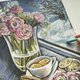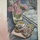 “早上早餐。毛茛属画花卉艺术” - 纸,油画棒。原创油画棒作品。作者是纳德日达·科科里娜。