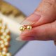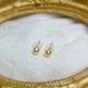 日本海水akoya珍珠分为白色、银灰色、羽黄金三大色系,其中的羽黄金色最为稀少名贵。纱织小姐甄选出一对正圆直径4-4.5mm羽黄金珍珠,皮光细腻,莹润透亮,从珍珠内里透出的金黄色,温暖明亮,娇小可爱。因为尺寸更小,更能聚焦反射光线,像个小金豆子一样,静静的佩在耳畔,自带气质,自成风景。