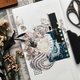 以海洋女神为创作灵感,创作了8位各不同样态的人鱼,用水彩慢慢渲染出鱼尾与鳞片的质感,珍珠贝壳的素材也很适合拼贴使用。