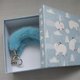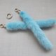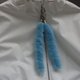 这款可作为包包或钥匙的吊饰,缀有两根蓝色貂毛。吊饰可拆卸,让您自由装饰于两个不同的物品上,或挂在拉链口袋。