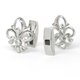 关于产品: 镀铑黄铜合金,银色 鸢尾花设计,背面镶嵌水晶 尺寸(约):2.2 x 1.9 厘米 后掀式表带固定设计 每对袖扣均附有专属收纳盒