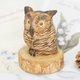 - 猫头鹰选用台湾肖楠创作,木材自带独特香气,视觉、嗅觉、触觉皆能感受作品真挚的温度。