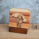 美丽多彩的国产材台湾木皮与欧洲百年镶花工艺Marquetry结合。成为美丽又实用的木质杯垫。 造型特殊的花瓶岩矗立在黄昏海边,多彩台湾杉木皮宛如彩霞满天。