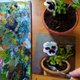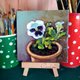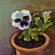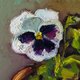 - Violet painting is painted with oil paints on thick cardboard. The size of the painting with a white-purple flower in a pot is 15 x 15 cm. or 6 x 6 inches. The painting with flowers is ready, sold without a frame.