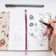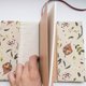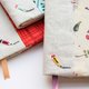 The front of this cover is made with an original design; a fabric of featuring botanical sketches of Singapore plants. The cover is mostly machine-sewn with a pencil motif hand-embroidered on the corner. A little peephole is worked into the front of the book cover to store a pen/pencil, making it fuss-free travel writing / drawing kit.