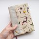 This bookcover is made to fit A6 notebook size of 10.5 cm x 14.8 cm and each purchase comes with a lined notebook to be used immediately. The fabric cover is reusable, so pop in a new A6 notebook when you run out of pages!