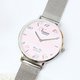 颜色: 玫瑰金色钢壳,淡黄面色紫色小碎花表盘,玫瑰金色钢网带