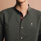 - Dark green men shirt straight fit with pine tree origami embroidery