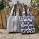 棉手提包双面使用。您可以每天更改为您喜欢的模式。坚固且缝制精良的包包,适合日常携带。打开袋方便携带,无拉链。