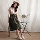 - 高腰棉质中长裙,松紧设计,并有蝴蝶结绑带以供各身型女孩弹性调整。