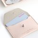 - ●金属扣安固定住阖盖 ●大约可收纳4张票卡 ●内部使用麂皮材质 ●正面烙印系列文字